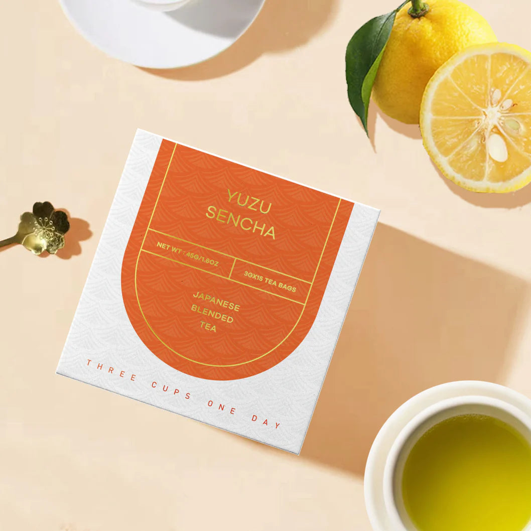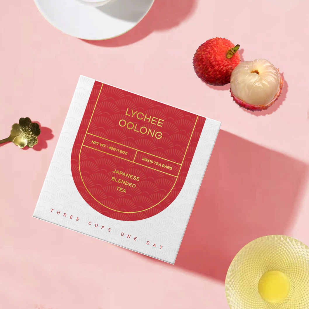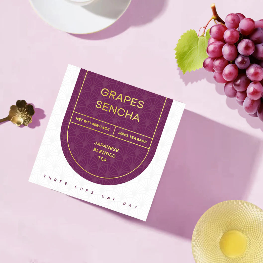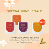 Lychee Oolong Tea Bags 15pcs+ Grapes Sencha Tea Bags 15pcs+ Yuzu Sencha Tea Bags 15pcs Get 1 Free Lemon Sencha Tea Bags 15pcs